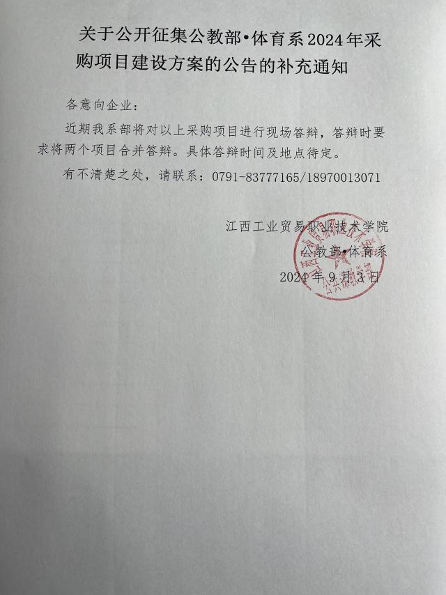 关于公开征集公教部•体育系2024年采购项目建设方案的公告的补充通知