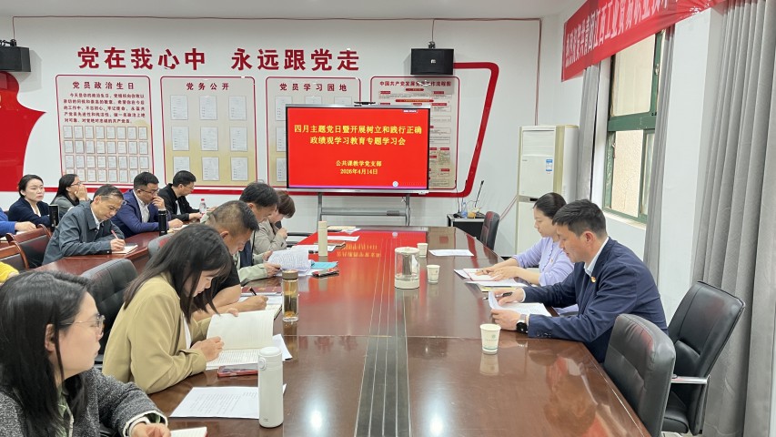 为深入学习领会习近平总书记关于树立和践行正确政绩观的重要论述,引导全体党员进一步强化党性修养、校准政绩坐标,4月14日下午,公共课教学党支部开展主题党日活动暨树立和践行正确政绩观学习教育专题学习会。党委委员、副校长曾聪出席会议并作总结讲话,支部全体党员参加会议,会议由党支部书记胡勇波主持。